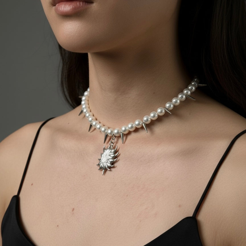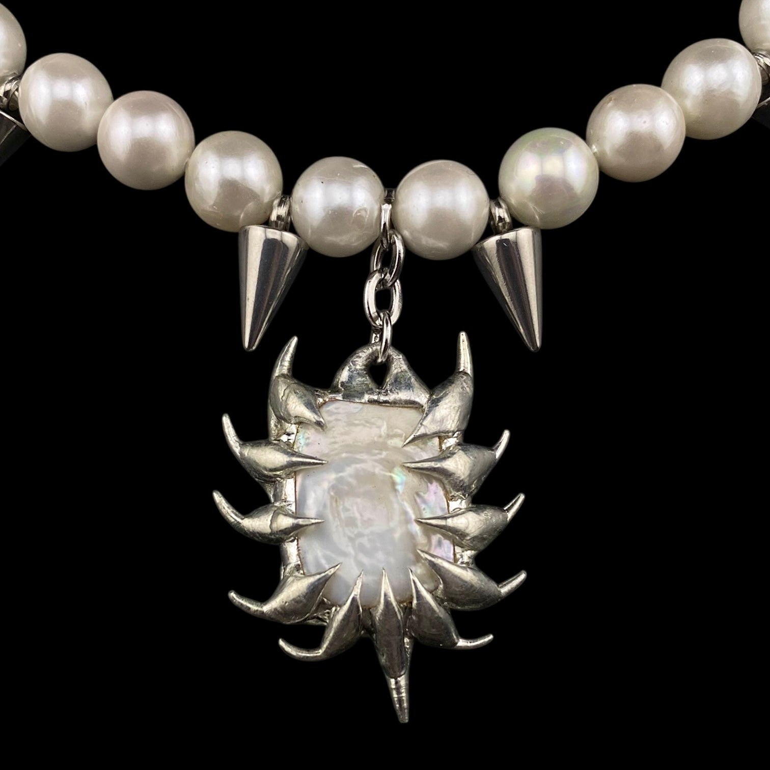 - Pendant: Each pearl is 100% natural, so its shape, texture or thickness may vary slightly from the photos, that's part of its charm! — Total size (with spikes): approx. 3.5 cm.
