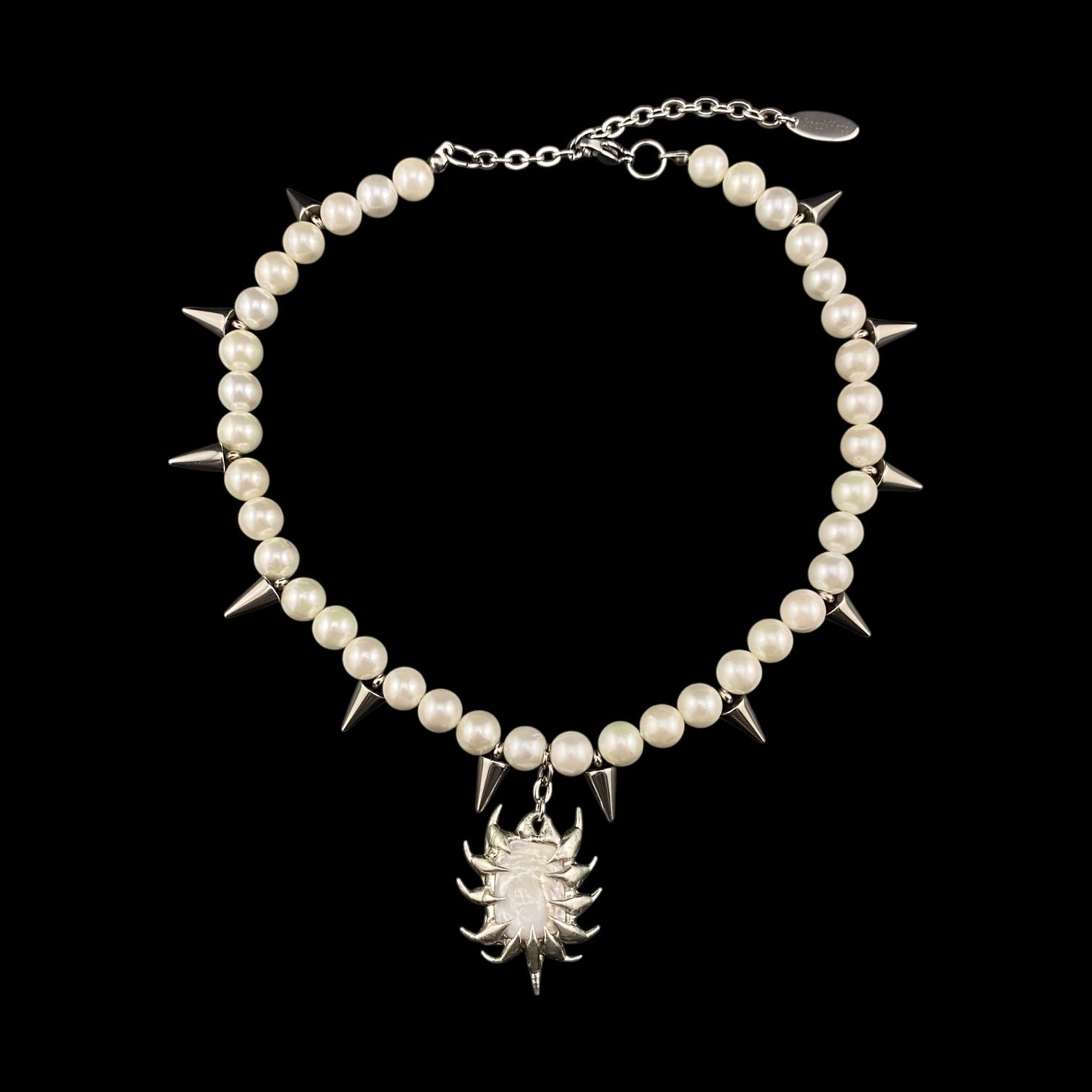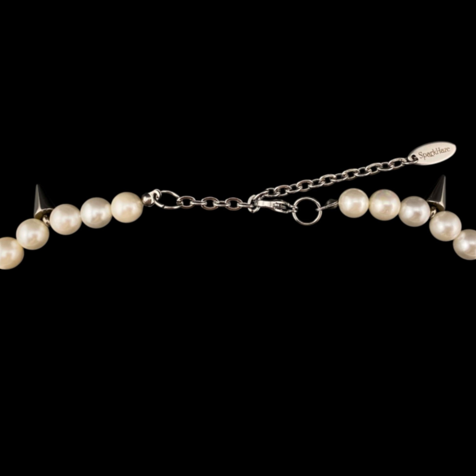 - Chain: White nacre beads and stainless steel spikes 35cm + 5cm